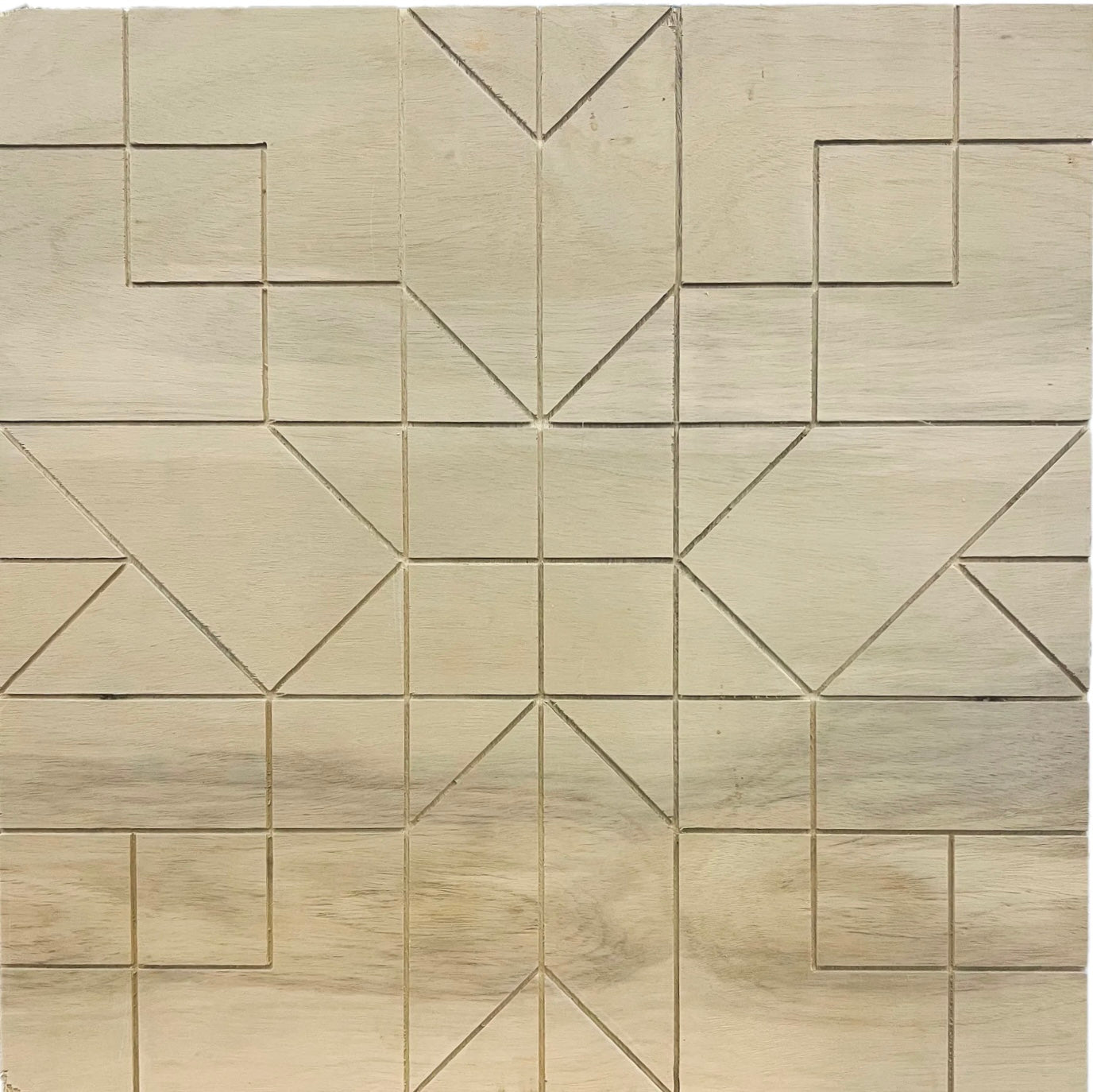 This barn quilt measures 24"x24"x3/4" and is crafted from plywood. Customization options are available, including size and painted design. Contact us for further details.