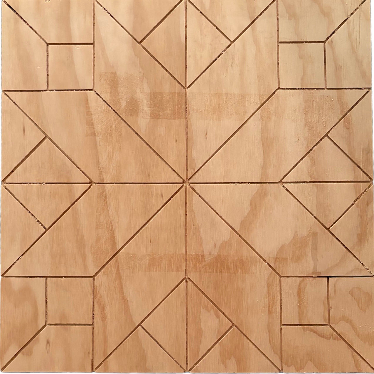This barn quilt measures 24"x24"x3/4" and is crafted from plywood. Customization options are available, including size and painted design. Contact us for further details.